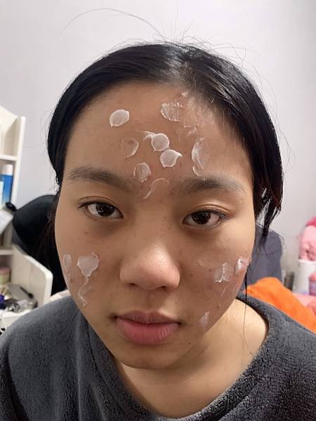 它這款也可以抗痘, 所以我會拿來擦全臉, 睡前薄擦, 早上起床起掉.